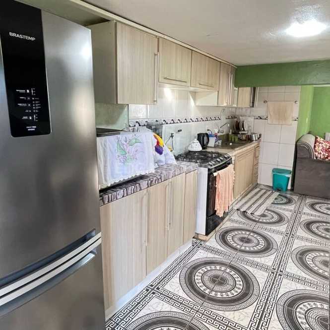 Casa da frente na parte inferior: cozinha, sala, churrasqueira.