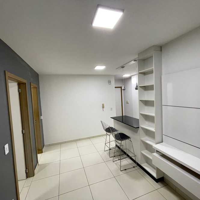 ✔️ Salas de estar e jantar integradas, com painel e ar-condicionado